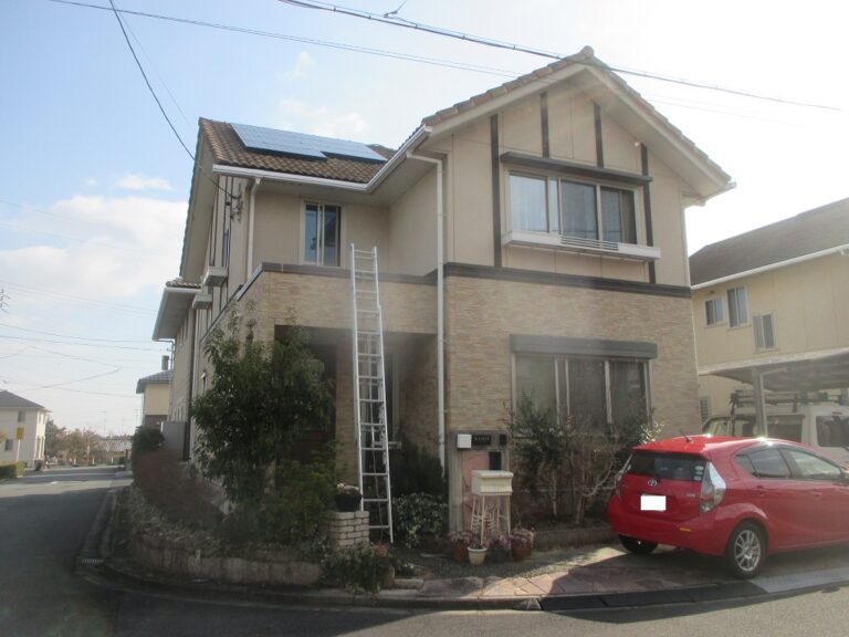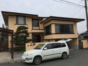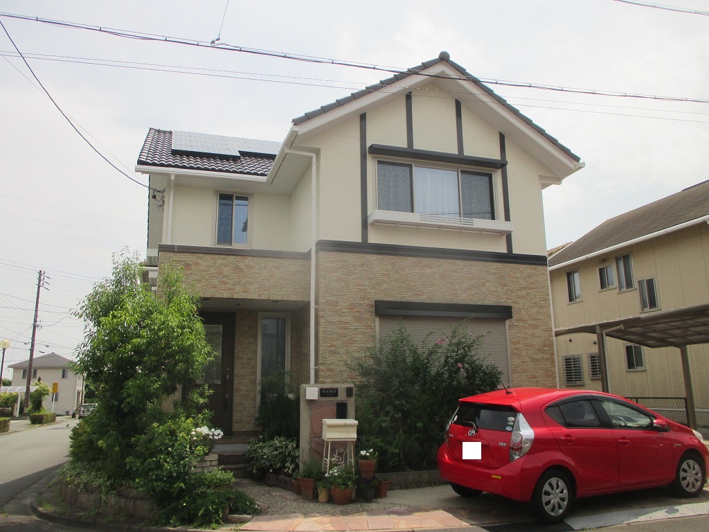 昨年冬に施工いただいたお客様からご紹介をいただき、工事を担当することになりました。1階外壁は新築時のデザインを生かしたクリヤー塗装を施し、2階はイメージに少し変化をつける白っぽい色で着色しました。