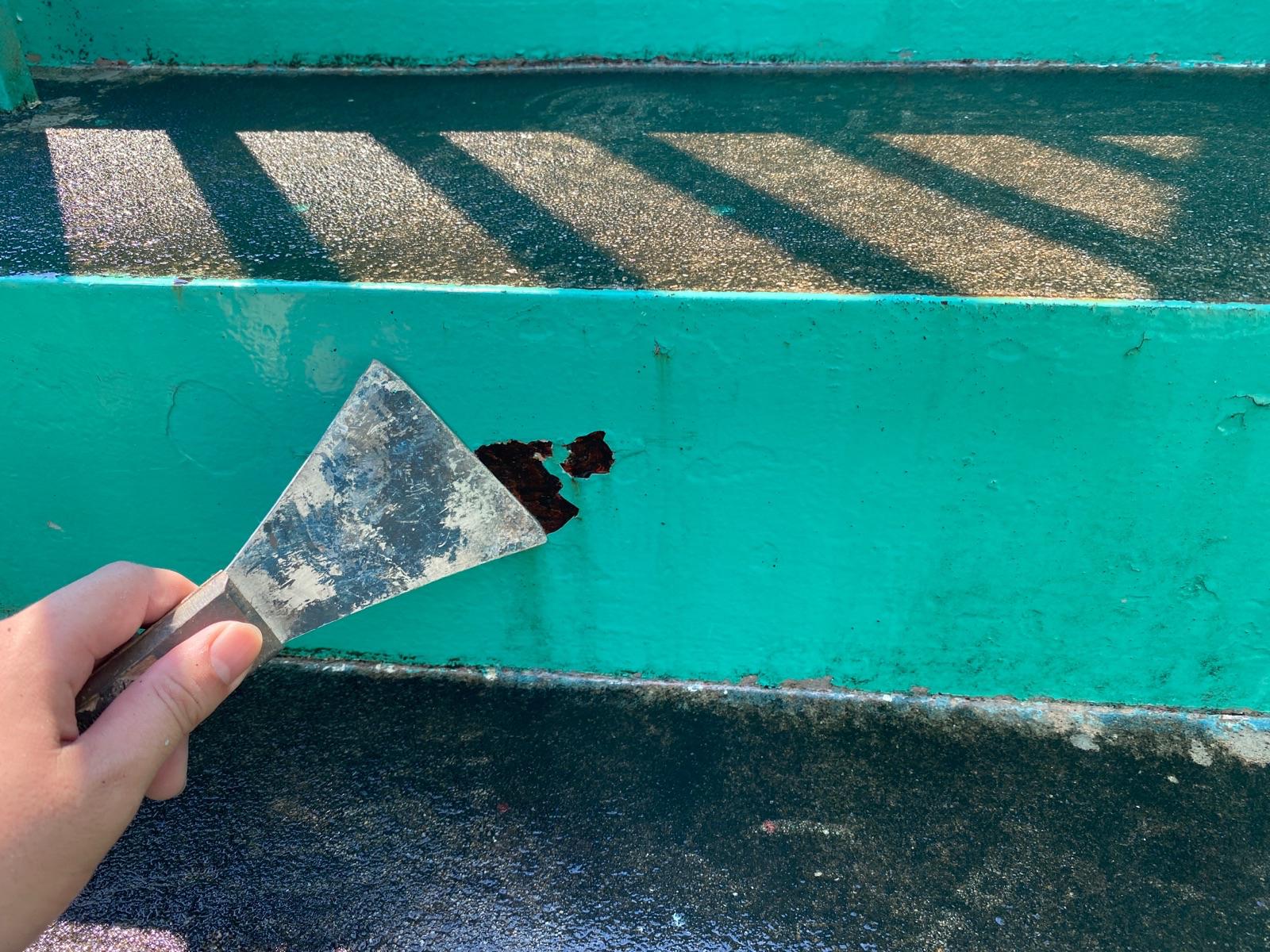 ケレン作業 弱った塗膜を剥がしたり、サビを削ったりします。