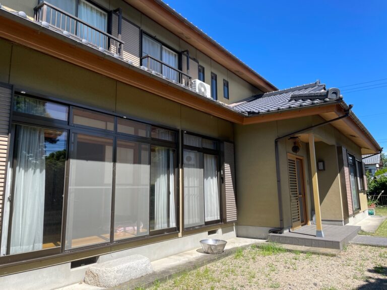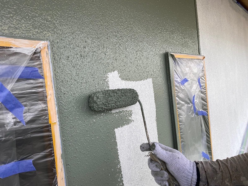 塗装前も丈夫なリシン吹付の外壁材でしたが、建てられてから年数が経っておりましたので、外壁にひび割れが出始めていました。下地補修と下塗り材でしっかりメンテナンスをしてから、和風なお家によくあう落ち着いたグリーン系の色で塗装をさせていただき、素敵に仕上がりました!