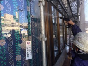 店舗の 防水工事 始まりました!ビルの洗浄も♪