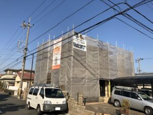一身田平野町で塗装工事の足場組みをさせていただきました!