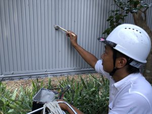外構の塀塗装です。写真では、黒から白へユニホームが変わっておりますが、今日一日合計で4枚着替えました。。。