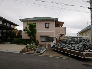 外壁の塗り替え工事のための足場組立をしております!