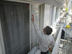 完了検査後の窓拭きを
