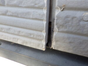 このサイディングボード、側面に塗装がされておらず生身のセメント状態なのです。シーリングが切れた状態で雨が当たり続けるとこのように外壁が変形してしまいます。放っておくと最悪外壁の張り替えになってしまい、費用も塗り替えにくらべ高額になってしまいます。