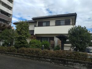 屋根はモニエル瓦という事で施工には注意しないといけない瓦です。外壁もクラックが多数あったので塗装で水の侵入を防ぎます。