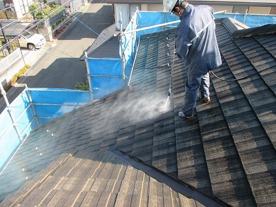 • モニエル瓦にはスラリー層という層があります。高圧洗浄はスラリー層が落ちるまでしっかりと洗浄します。