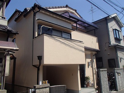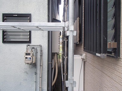 • 隣接する家との距離が大変狭く、お隣の敷地を借りての足場組立となりました。施主様の気持ちをくみ取り、ご近所様へのご挨拶を特に丁寧にさせて頂きました。