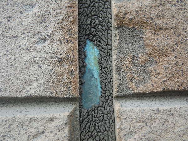 シーリングの劣化が顕著で、中のバックアップ材が見えている箇所もありました。