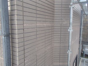 レンガ調サイディングの目地の部分だけ塗膜の剥離があり、表面だけは光沢が残っていたため特別な加工がされたサイディングの可能性がありました。