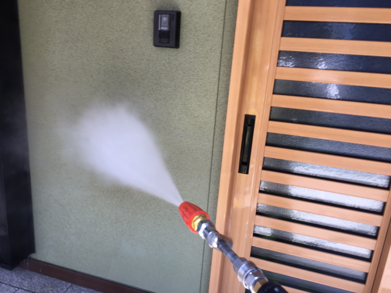 外壁の塗膜劣化や、水染み等の付着が気になる状態でした。