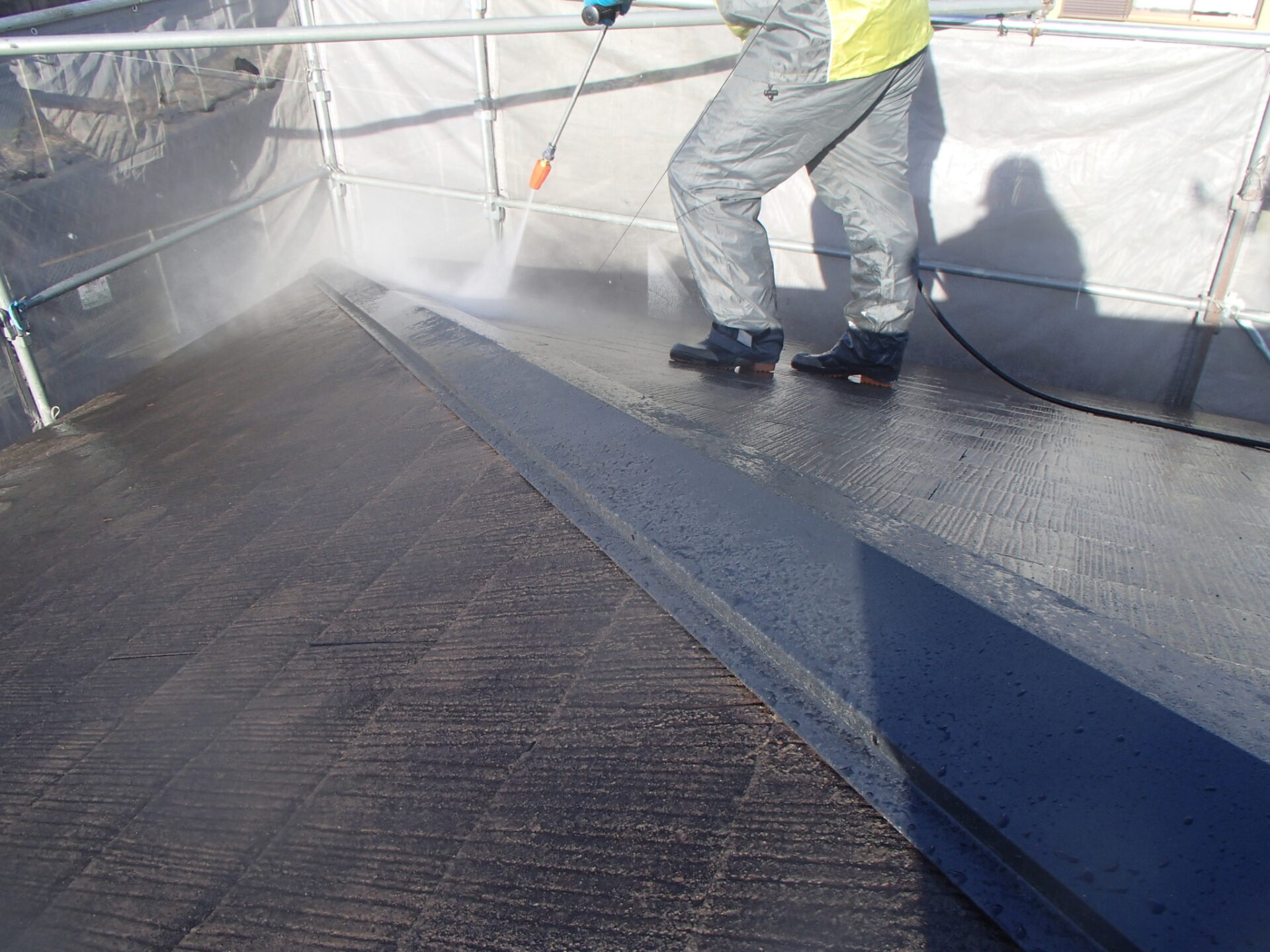 防水性だけでなく、遮熱性にも優れた塗料で、綺麗に塗りあがりました!