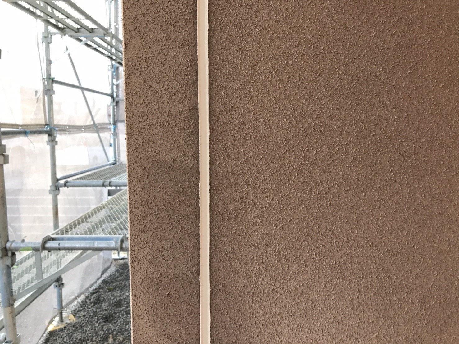 外壁表面の汚れや割れが出始め、新築からの経年劣化が進んでいる様子でした。