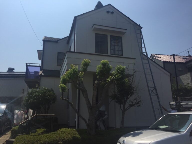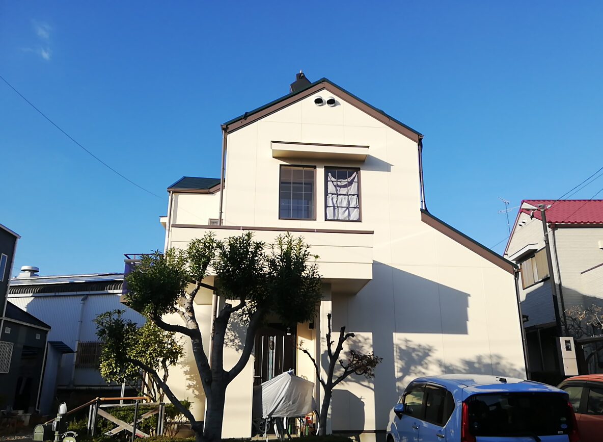 スレート瓦の防水機能の低下や、外壁の色あせが気になられており、工事を担当させていただくことになりました。
