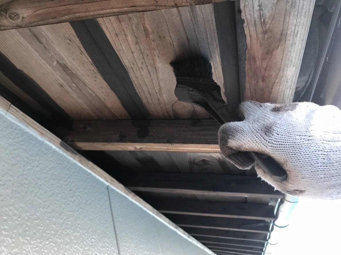 軒裏(木部)の塗装 木部専用塗料を使用しました