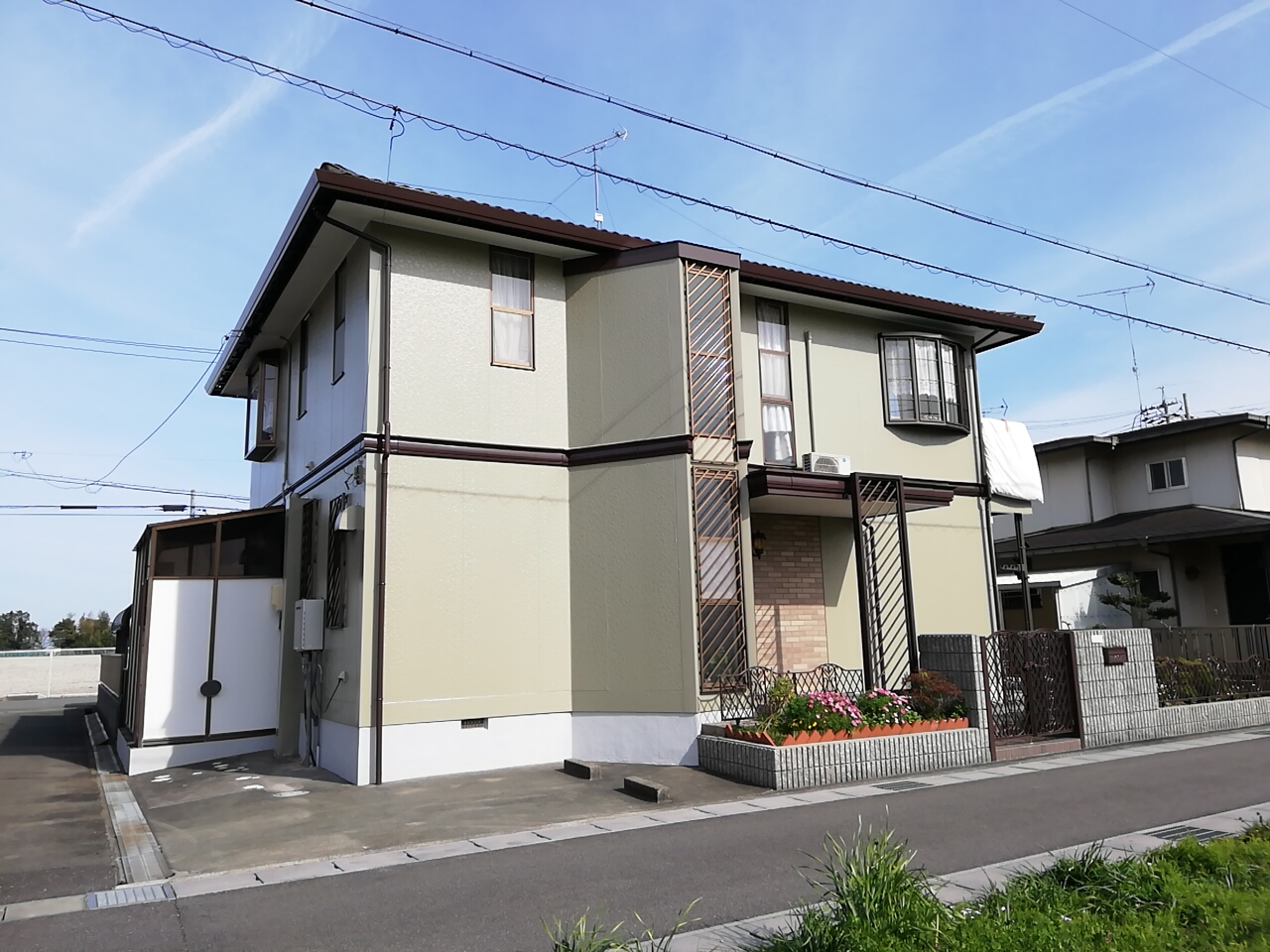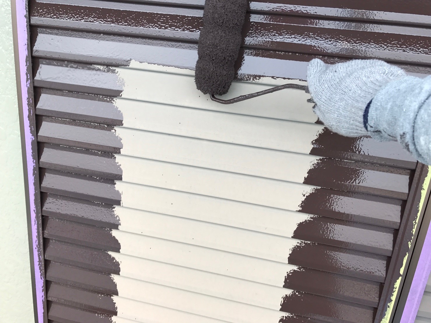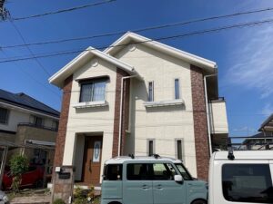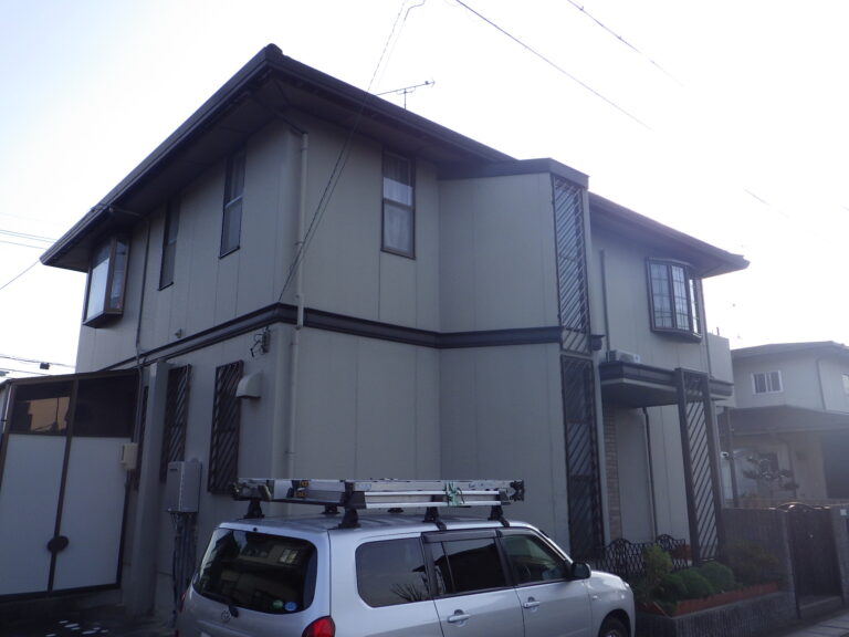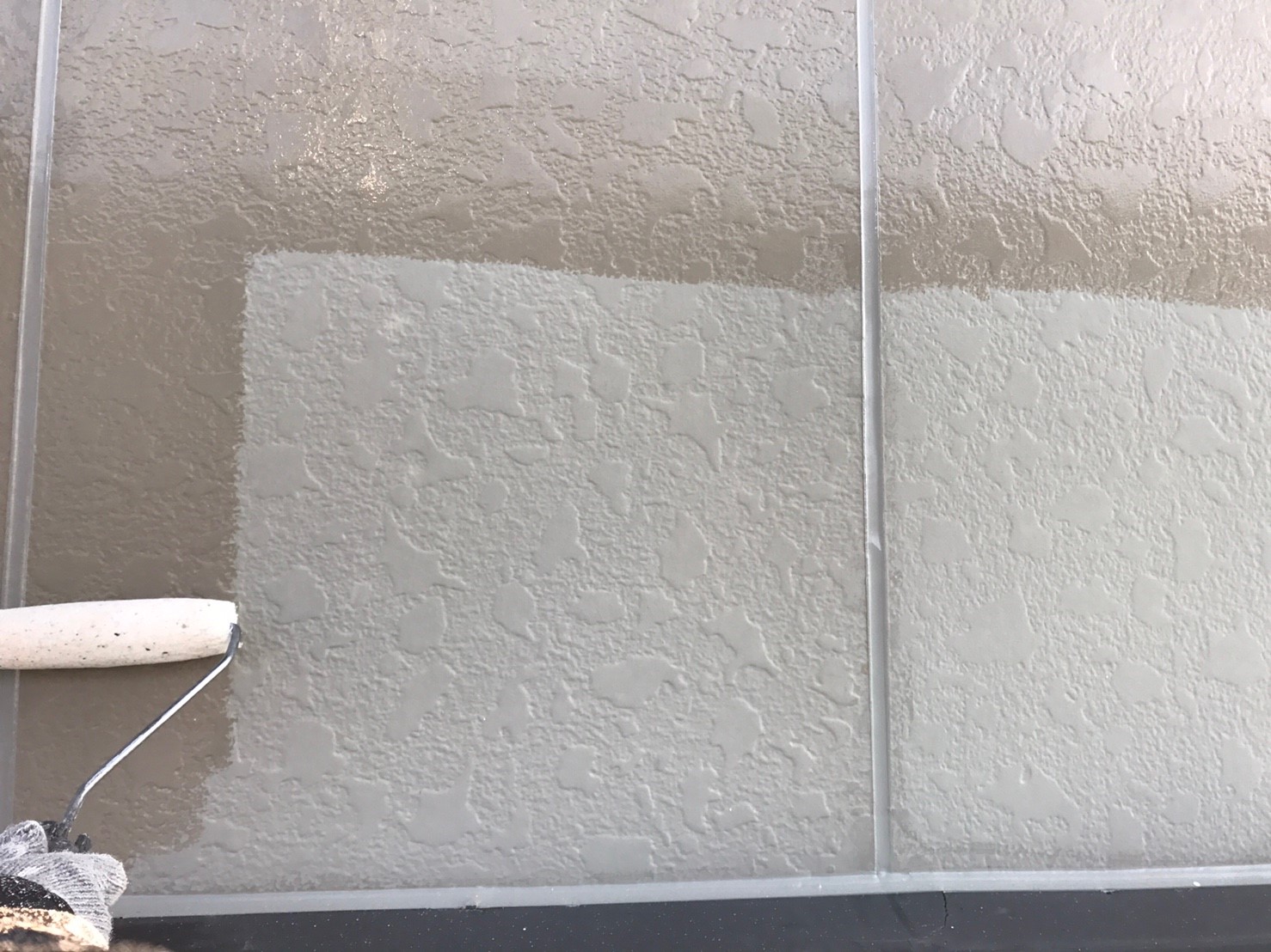 前回の塗装から10年が経ち、外壁のチョーキングが進んでいました。今回の塗装ではもっと耐久年数を伸ばし、低汚染性の強い(汚れが染みつきにくく、すぐに水で落ちる)塗料でメンテナンスさせていただきました(^^)♪