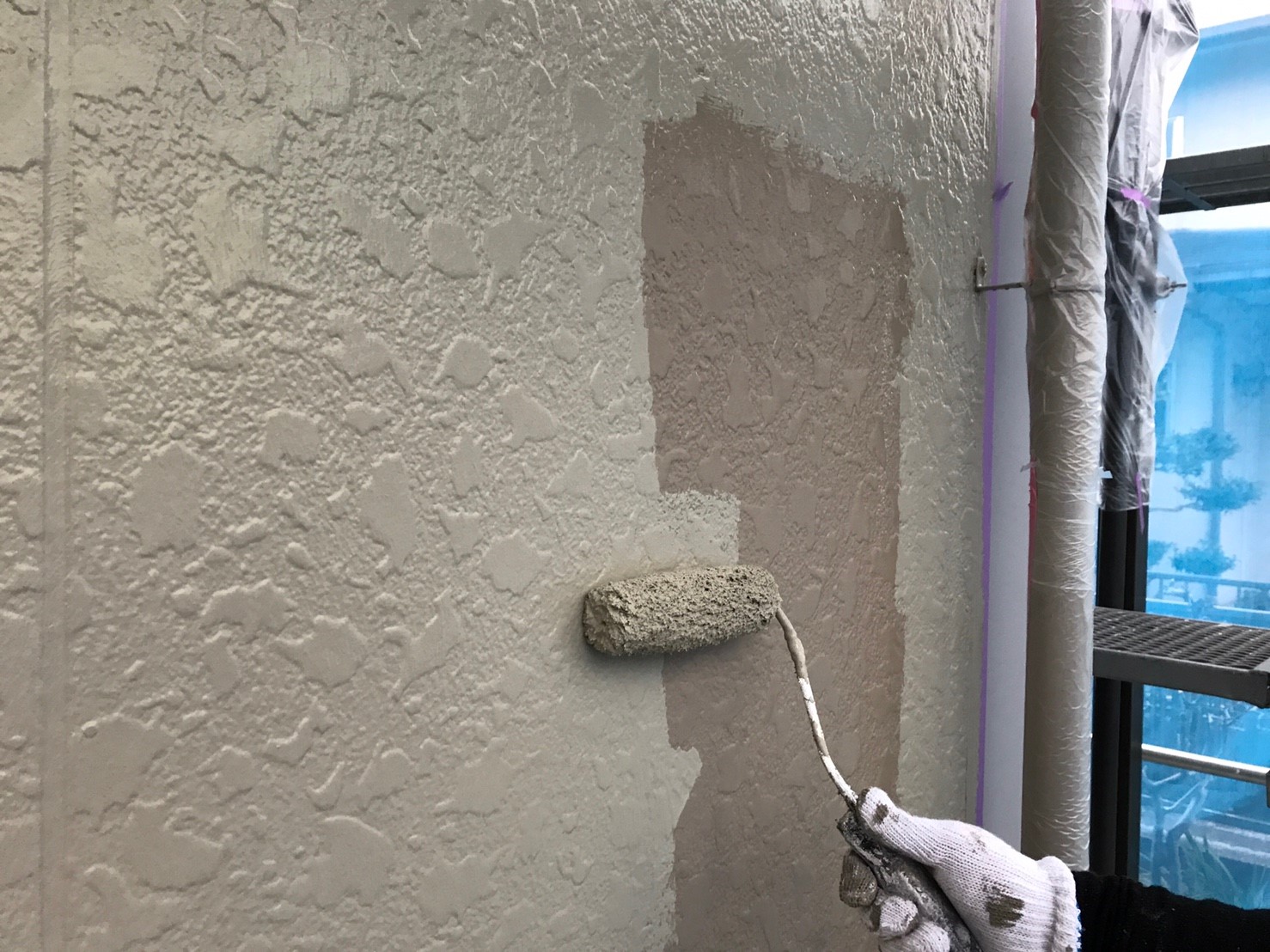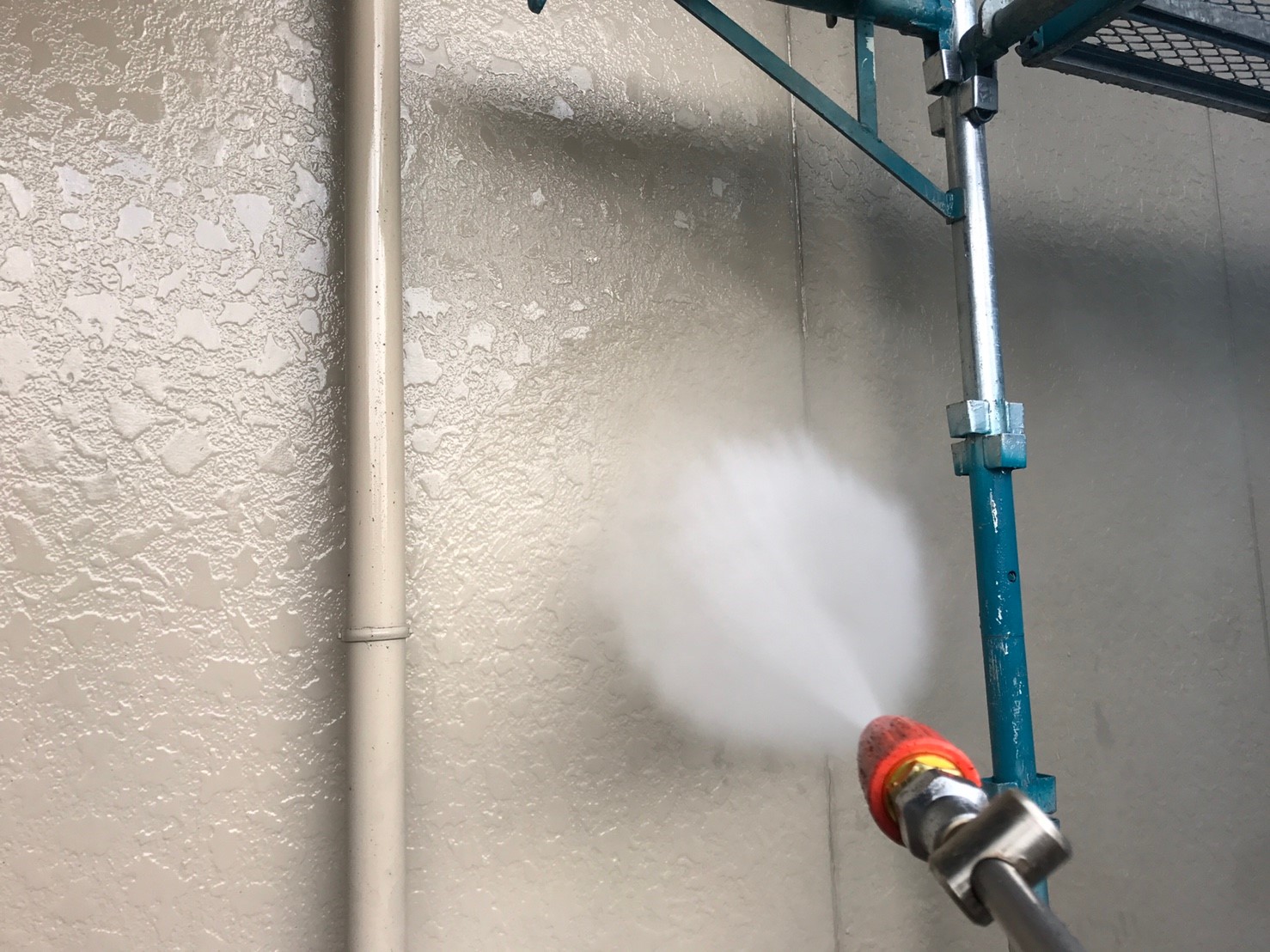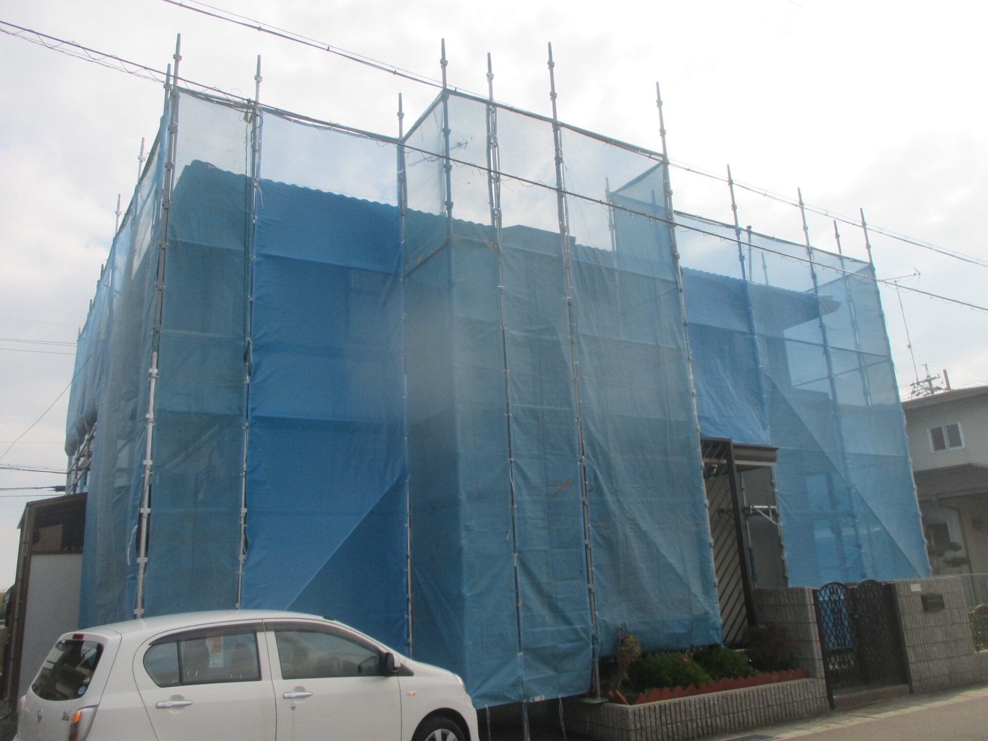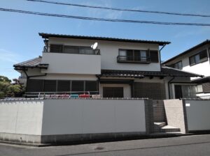 前回の塗装から10年が経ち、外壁のチョーキングが進んでいました。今回の塗装ではもっと耐久年数を伸ばし、低汚染性の強い(汚れが染みつきにくく、すぐに水で落ちる)塗料でメンテナンスさせていただきました(^^)♪