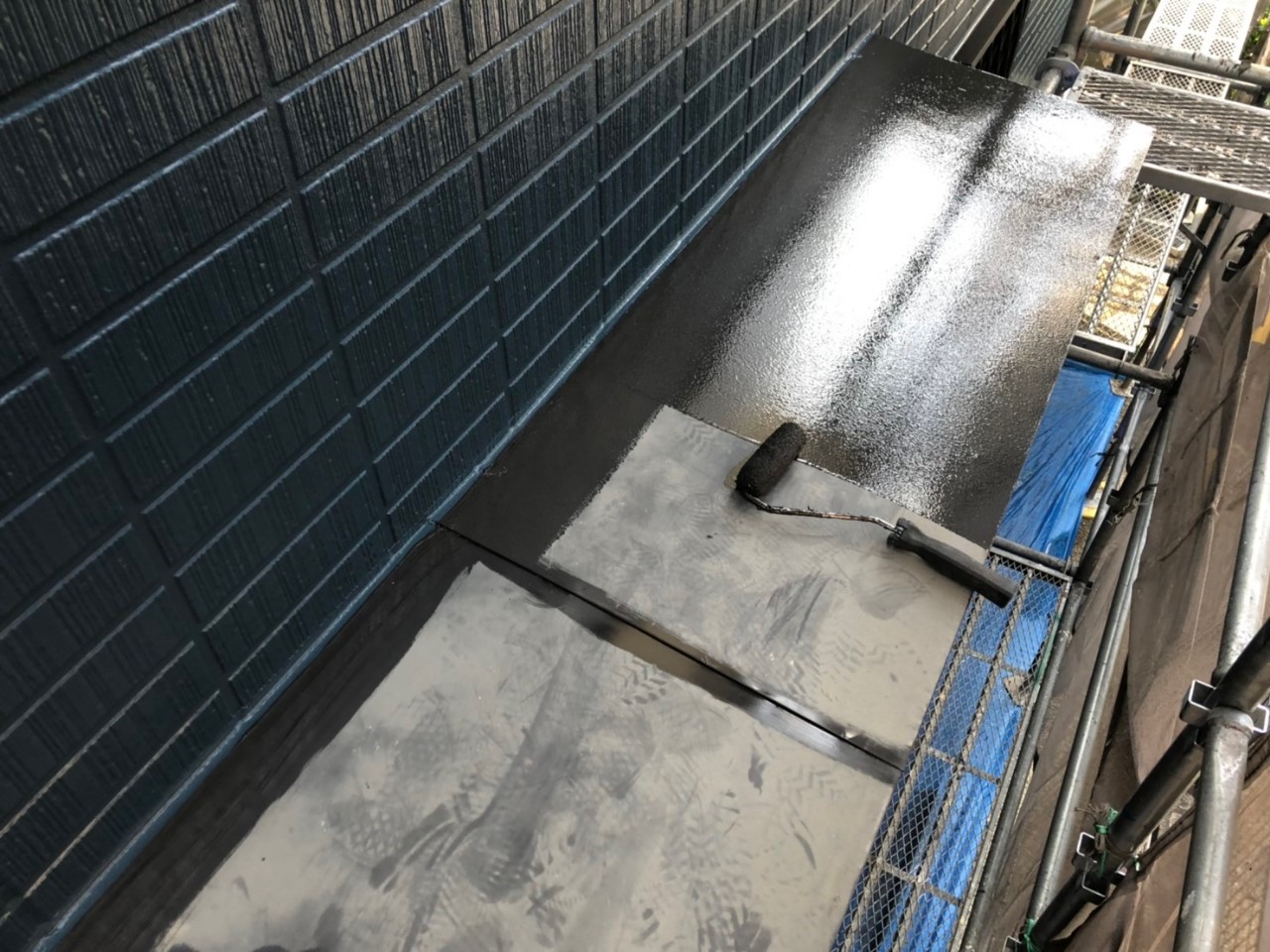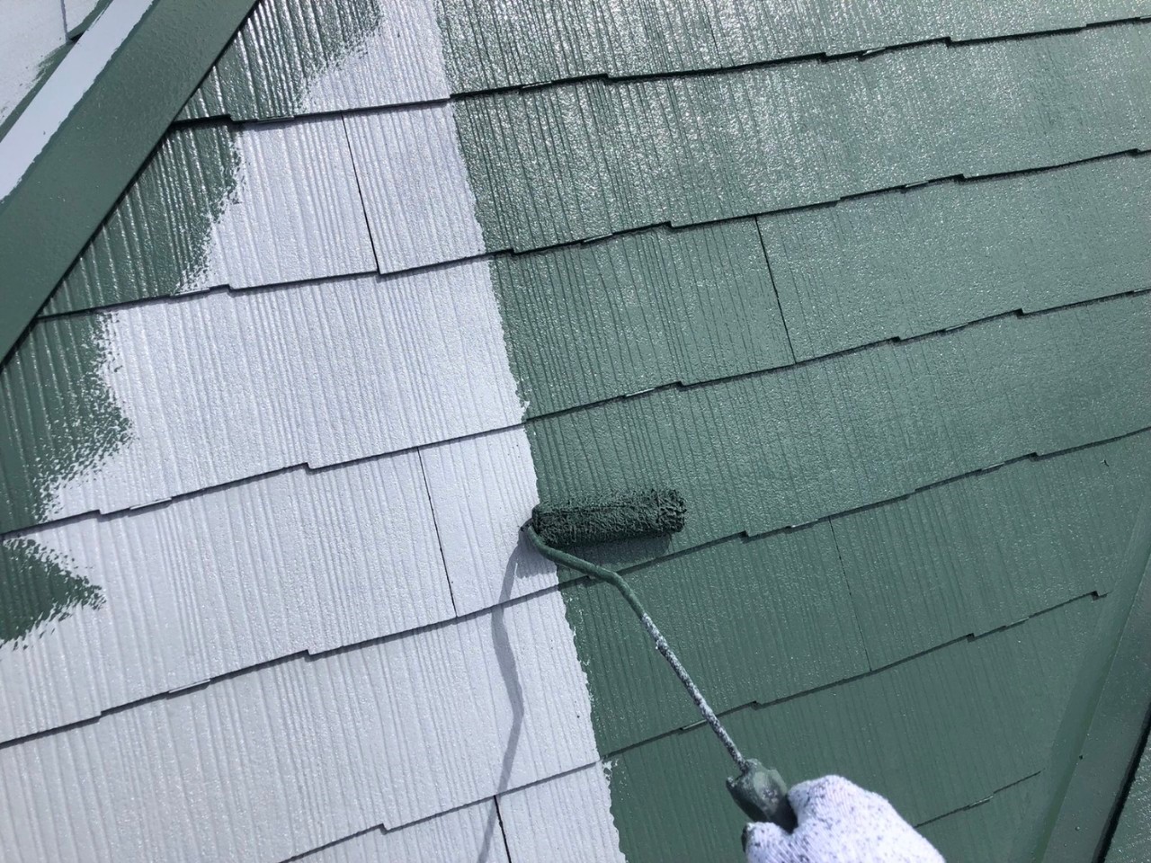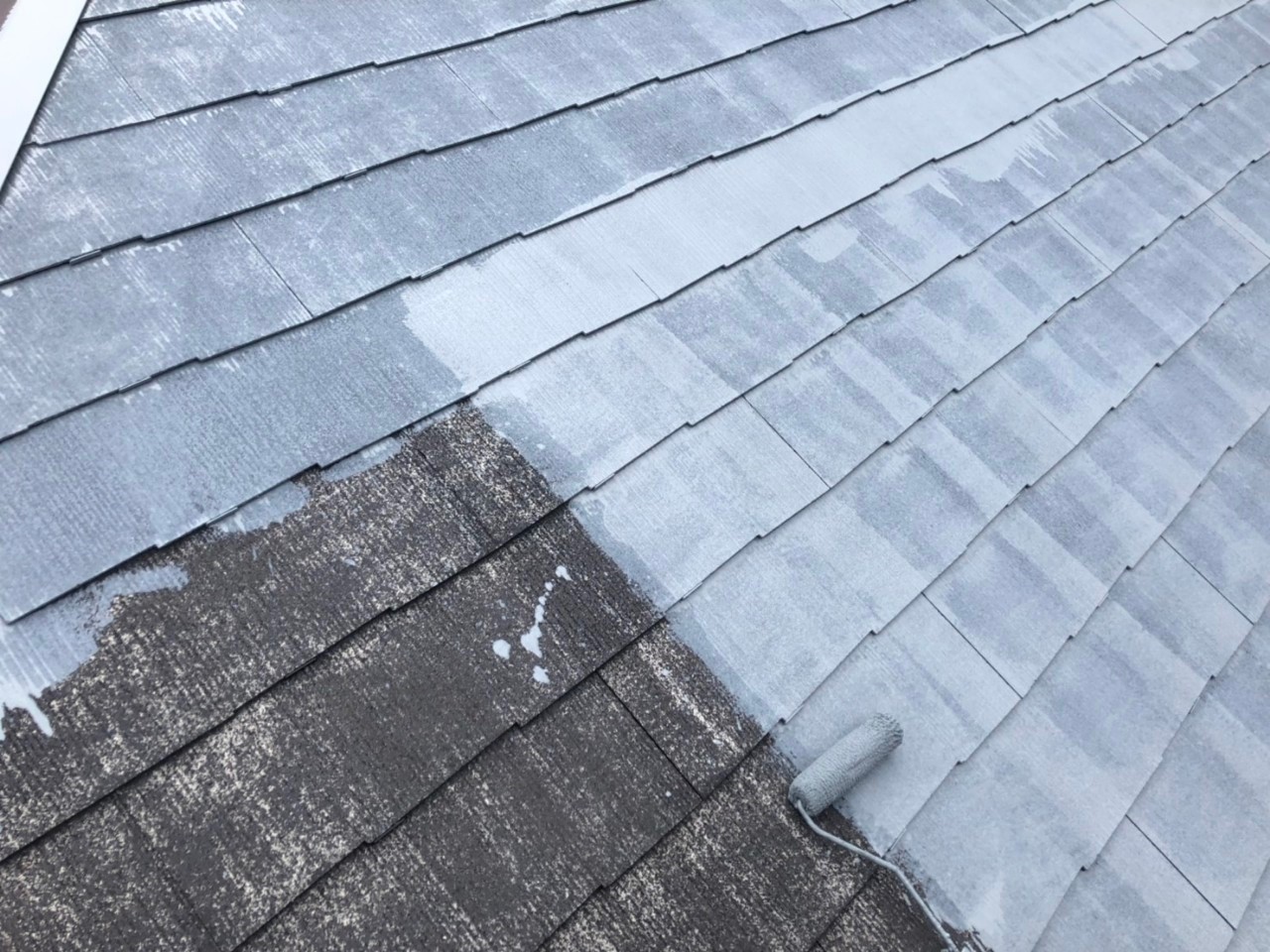 屋根下塗り② 不具合が起きないよう塗り重ねました。