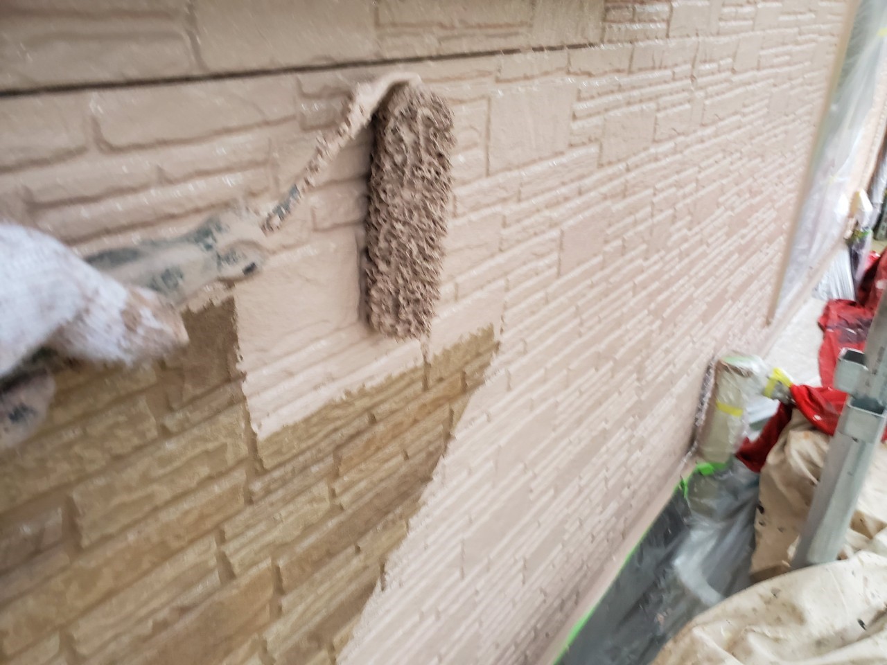 建てられてから10年ほどが経過し、外壁の様子が気になるということで診断をご依頼いただきました。目地(シーリング/コーキング)の傷みと、そこからくる外壁のひび割れがありましたので、防水のための目地の打替え・塗装工事を施工いたしました。