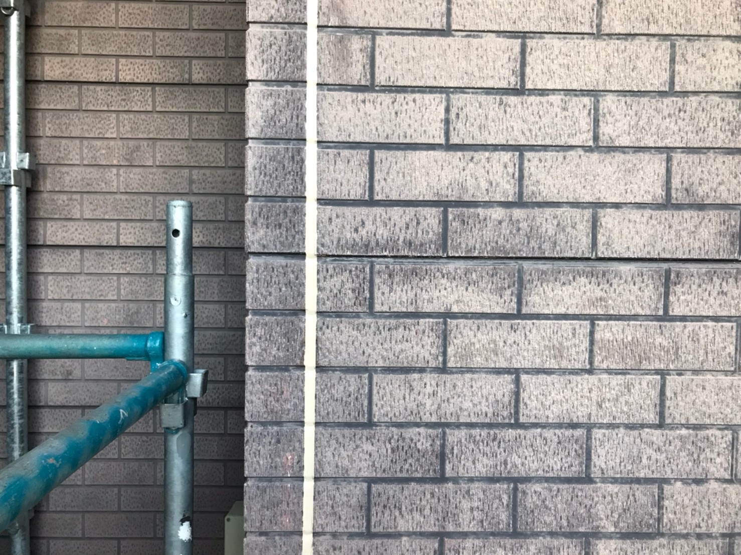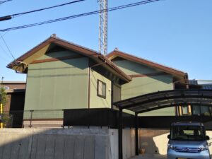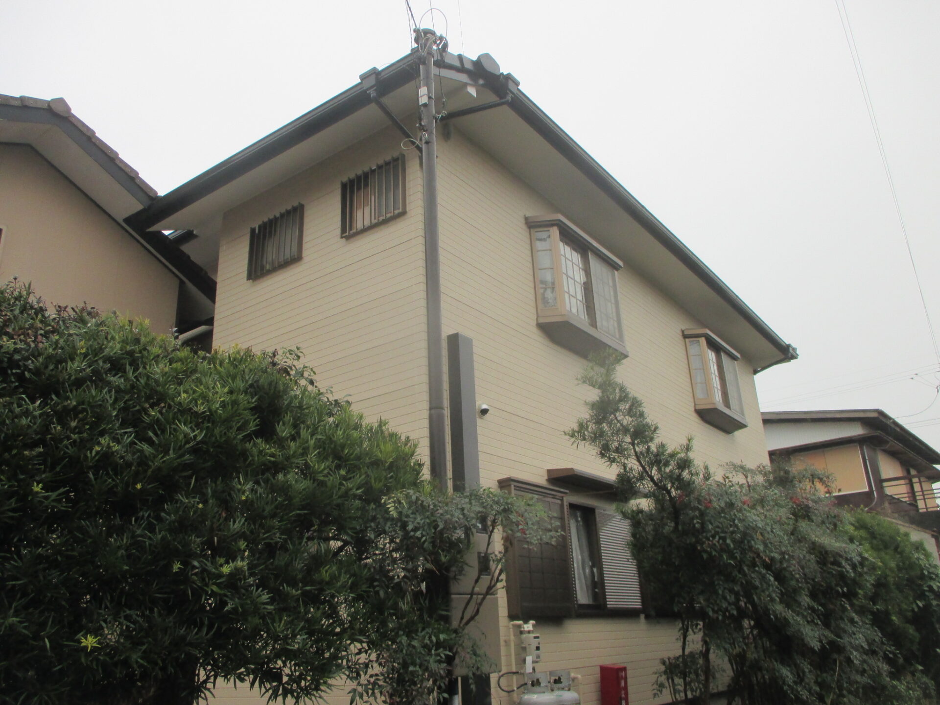 塗装前、外壁の反りが多く見られ漏水の心配がありました。釘でボードを打ち付け戻すのにはリスクがありますので、シーリング材の打ち替えで隙間をしっかり充填し、安心の防水塗装工事をすることができました!