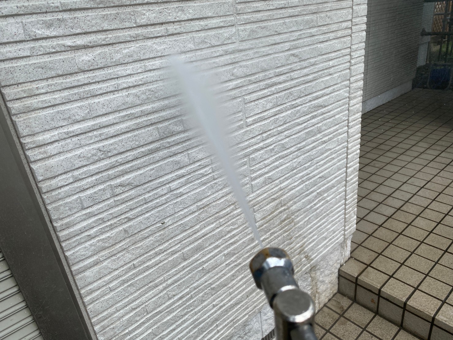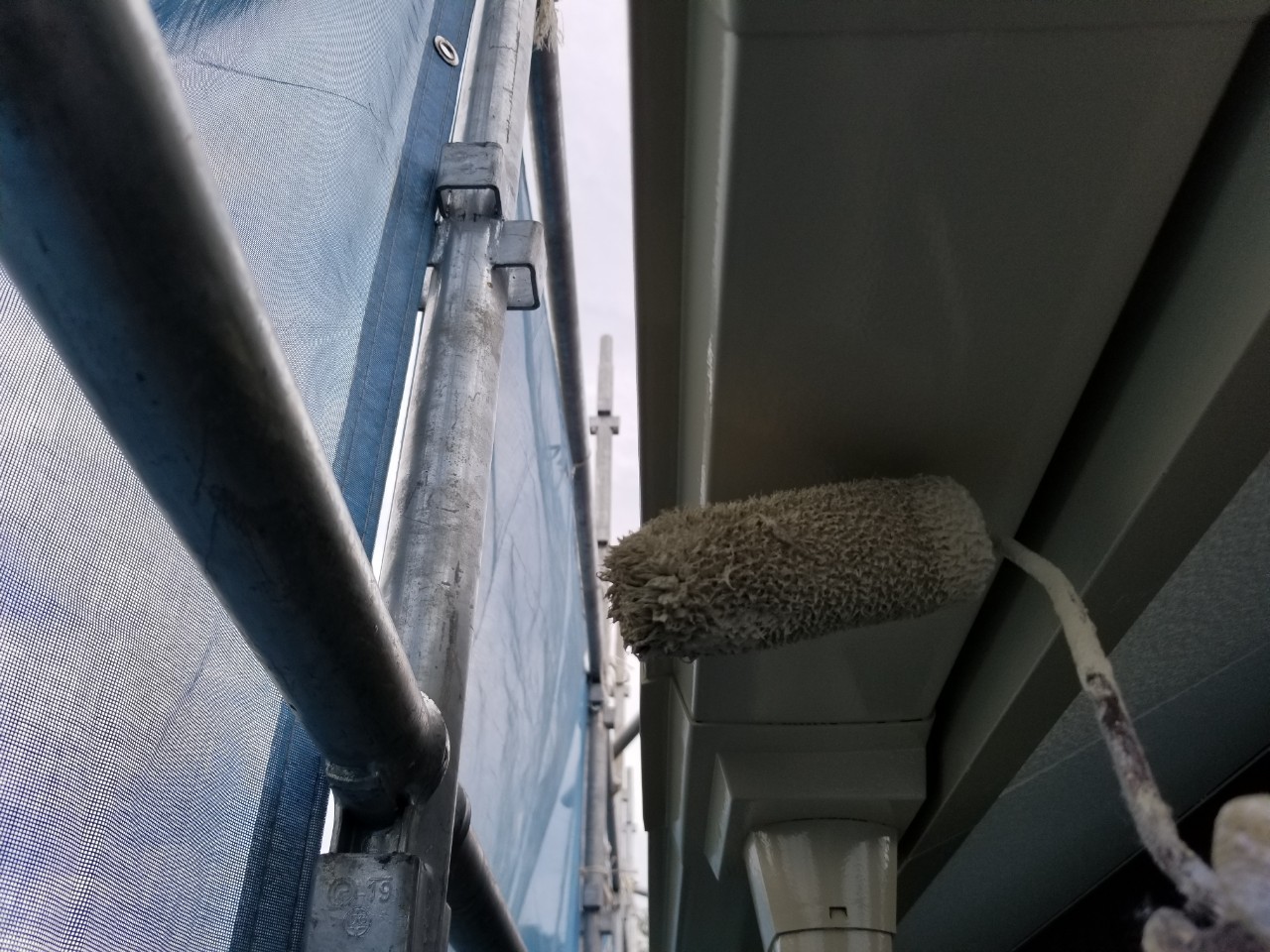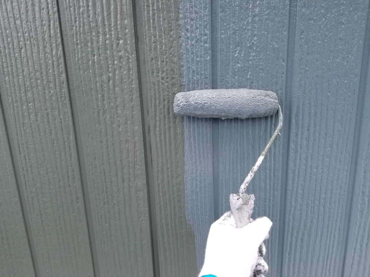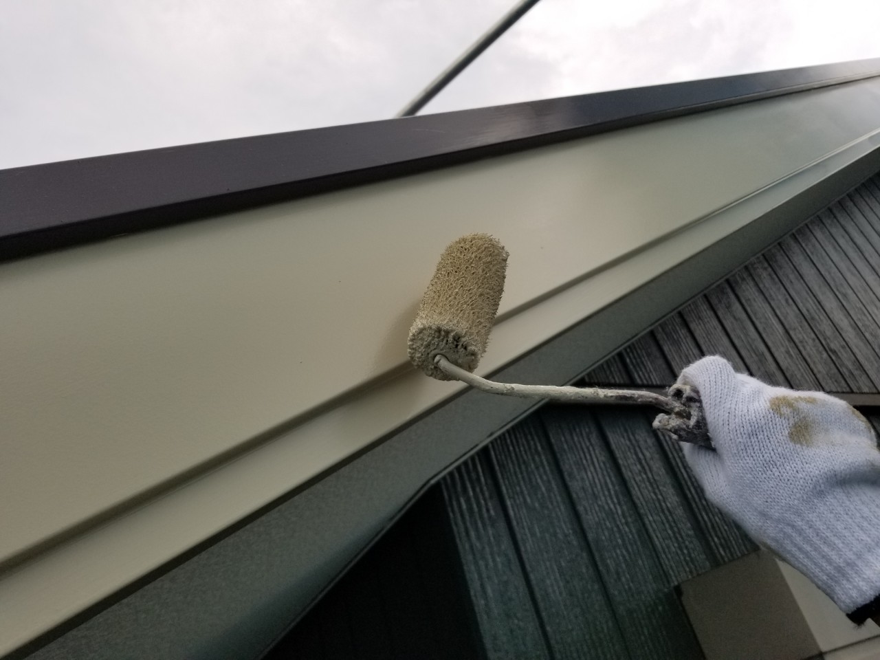 1階は細かい石調の入った外壁・2階は1色の外壁でしたので、1階をクリヤー塗装(透明な塗装)で、2階はイメージを変えてみたいとご要望のもと、グリーンで塗り替えをさせていただきました。外塀もあわせてグリーン系統でまとめさせていただいたのもポイントです♪