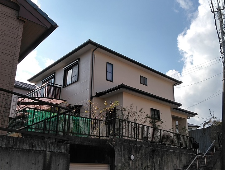 前回の塗装から10年以上経過し、屋根と外壁の塗装の劣化が見られる状態でしたので、今回メンテナンスのご提案をさせていただきました。私たちが出している 看板を見ていただいたのがきっかけのようで、これからも地域に誇れるお仕事を提供できるよう、頑張りたいと思いました(^^)/