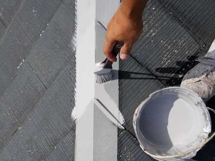 板金は金属なので、瓦とは違う下塗り材を使います。