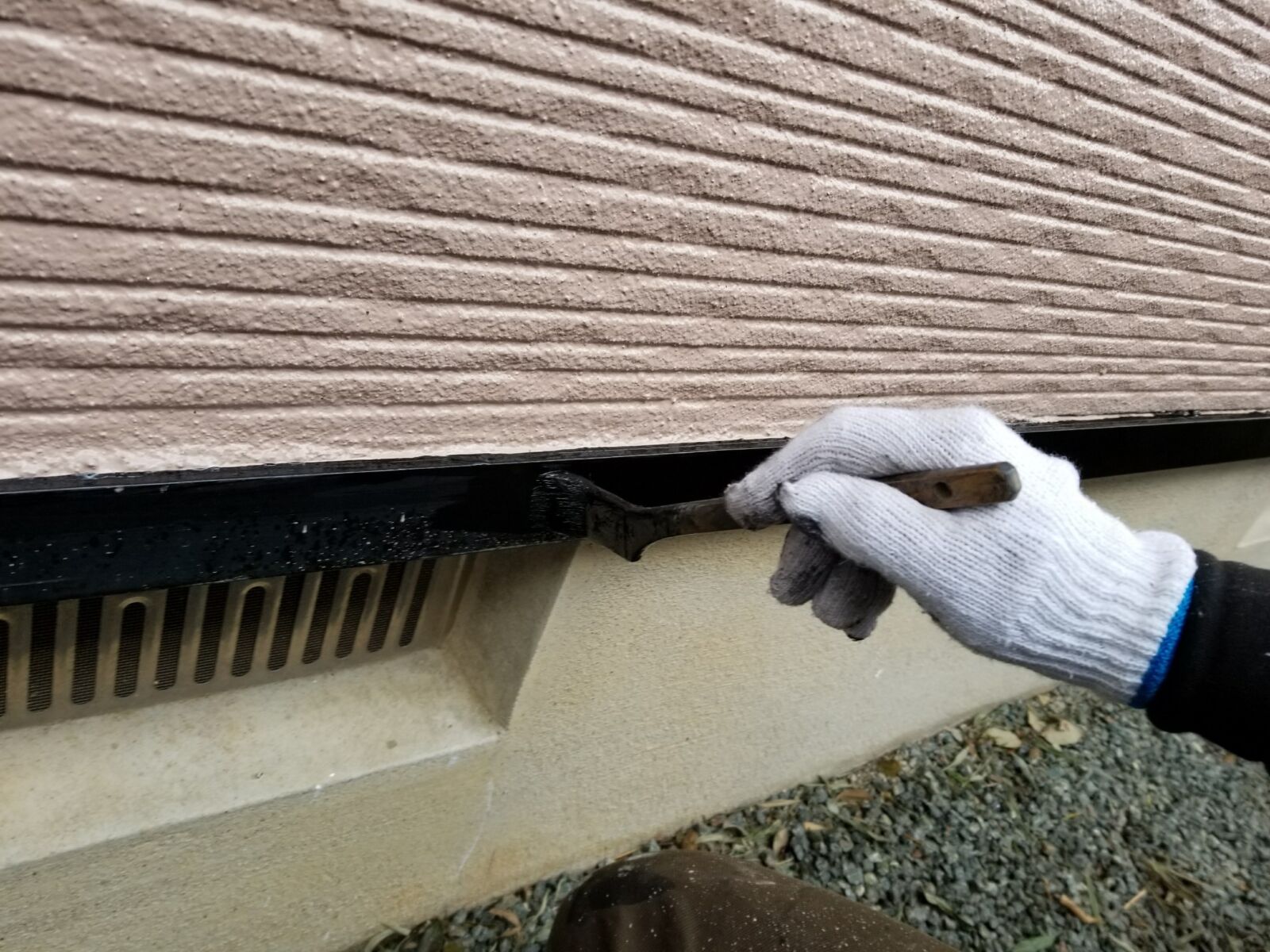 劣化した古いシーリング材は、カッターナイフで除去します。