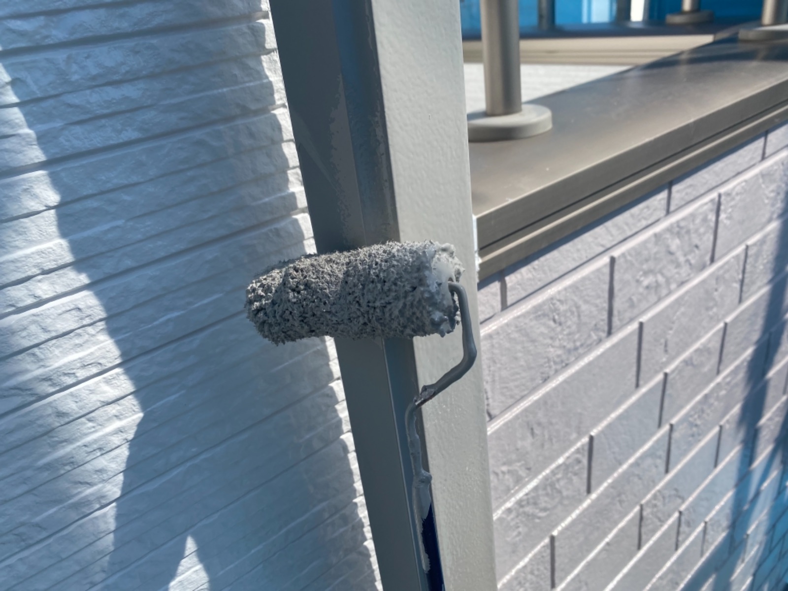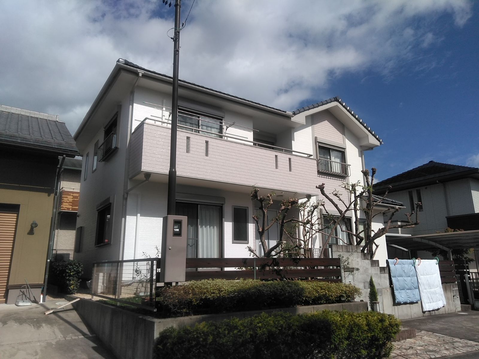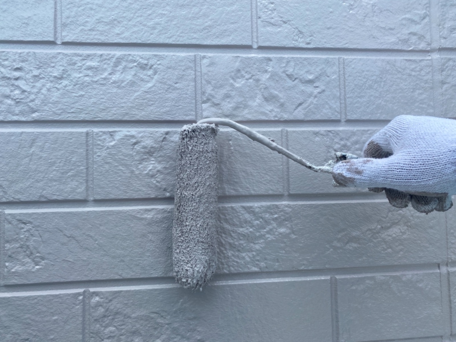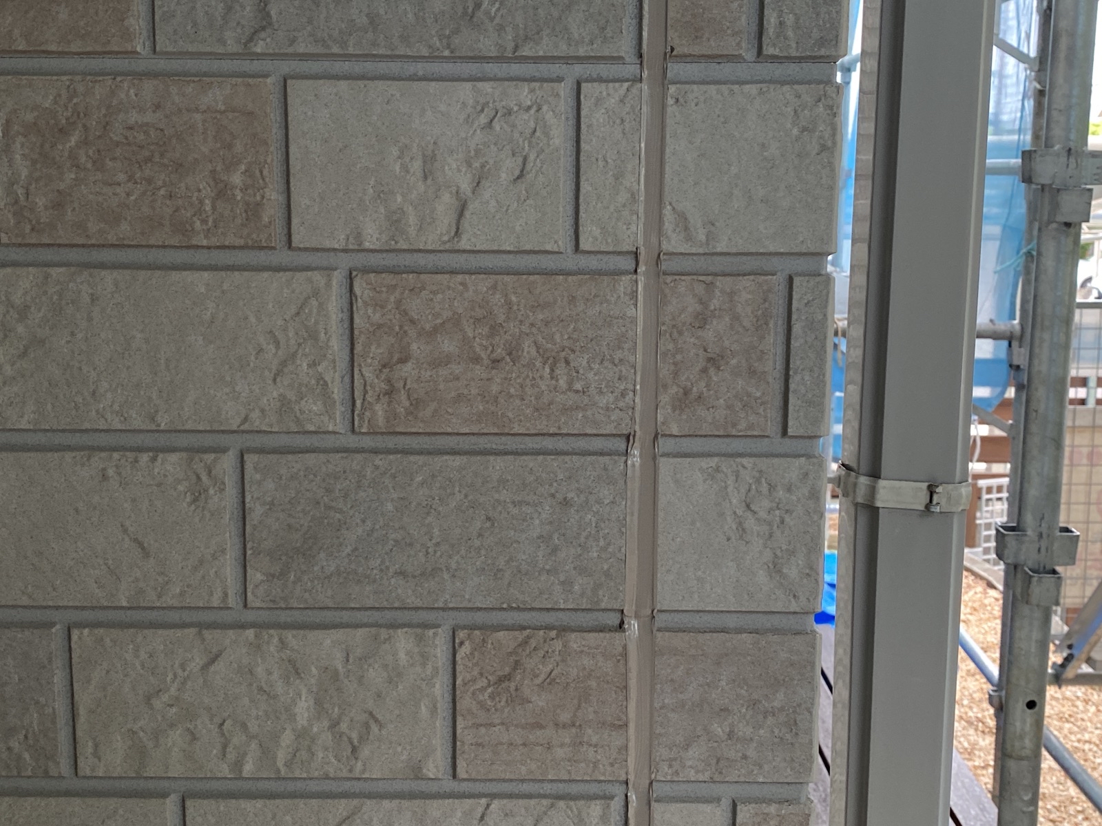 真っ白なメインカラーに、淡いピンク色のレンガ調部分のアクセントカラーの組み合わせがとても映えています☺ 外壁以外の付帯箇所はグレーで統一し、優しい雰囲気の仕上がりになったと思います。完成後の様子に、施主様に大変喜んでいただくことができました!