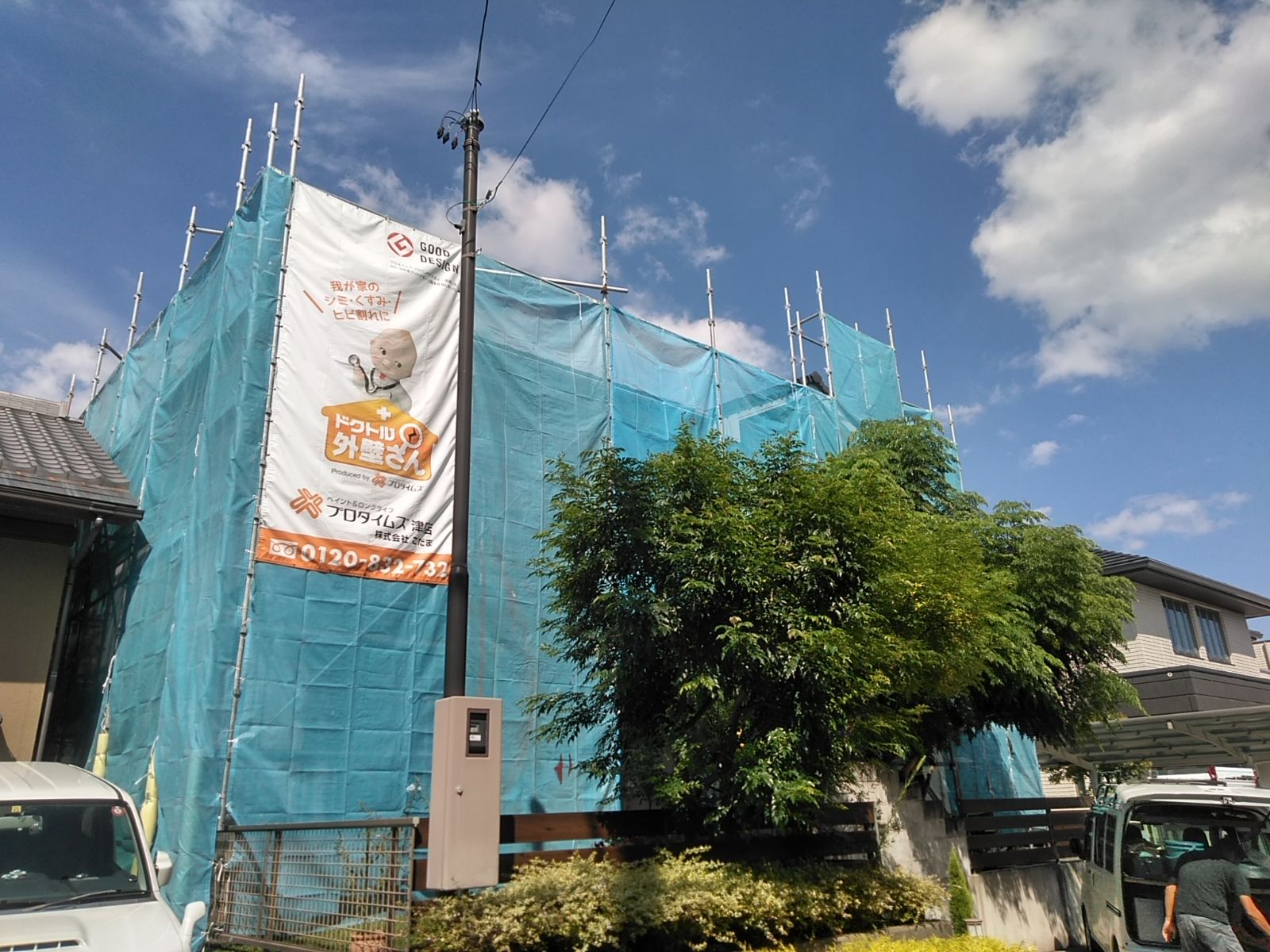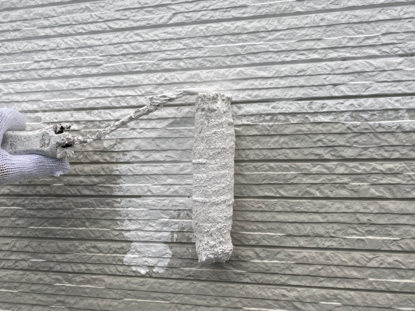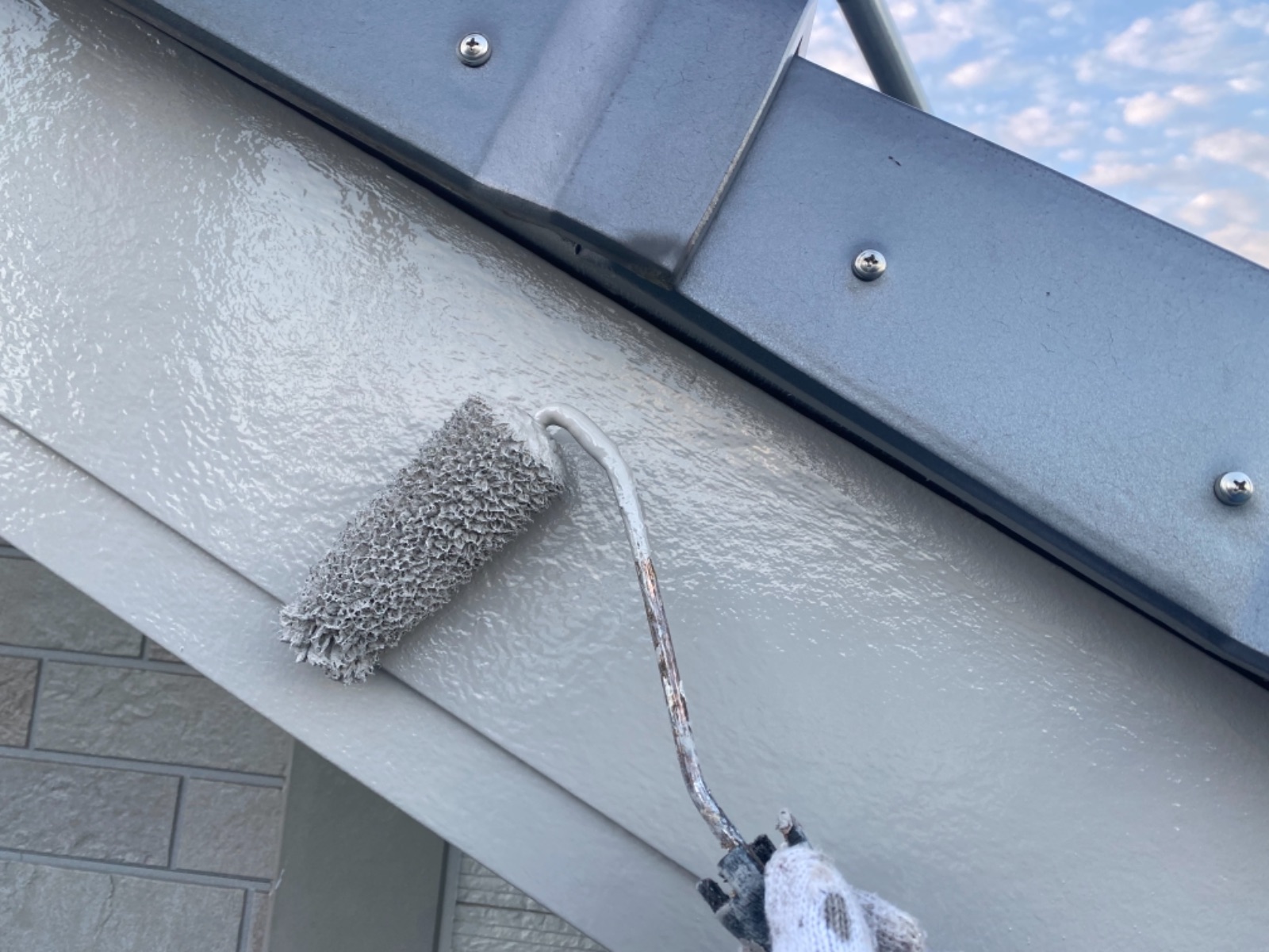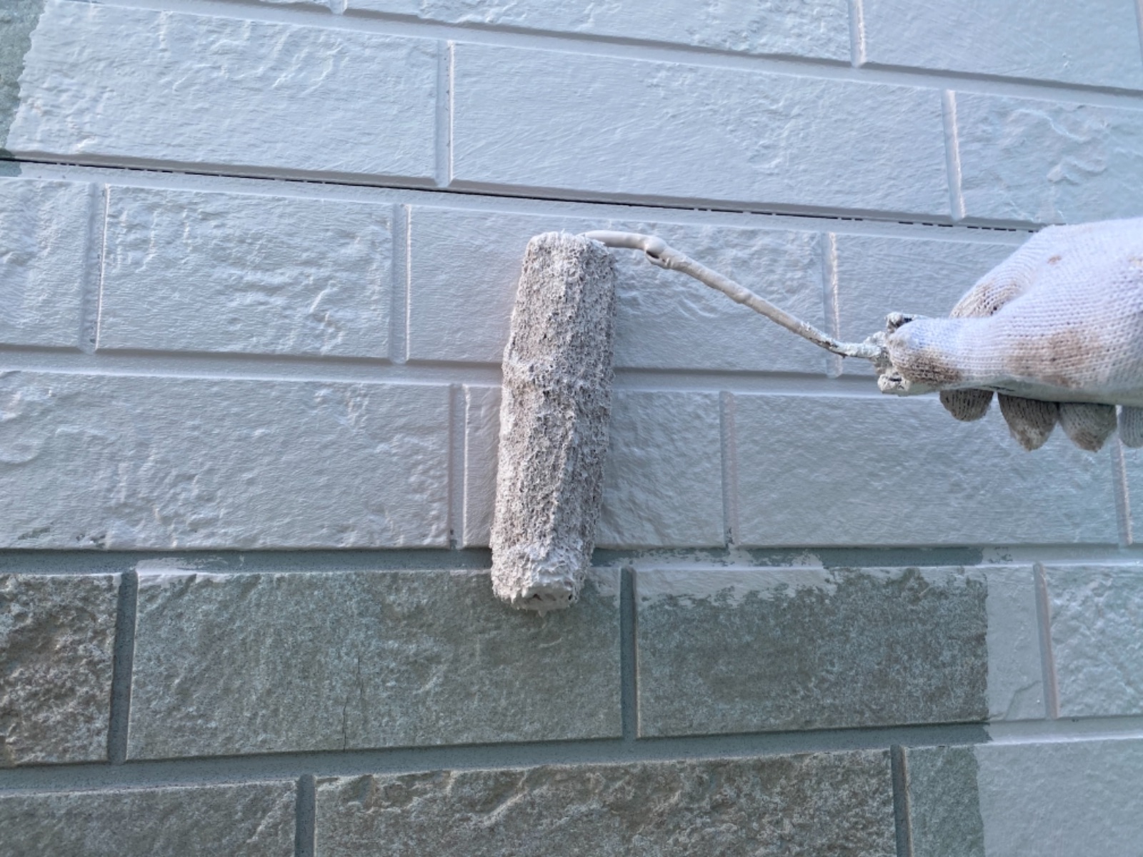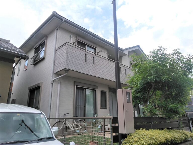 真っ白なメインカラーに、淡いピンク色のレンガ調部分のアクセントカラーの組み合わせがとても映えています☺ 外壁以外の付帯箇所はグレーで統一し、優しい雰囲気の仕上がりになったと思います。完成後の様子に、施主様に大変喜んでいただくことができました!