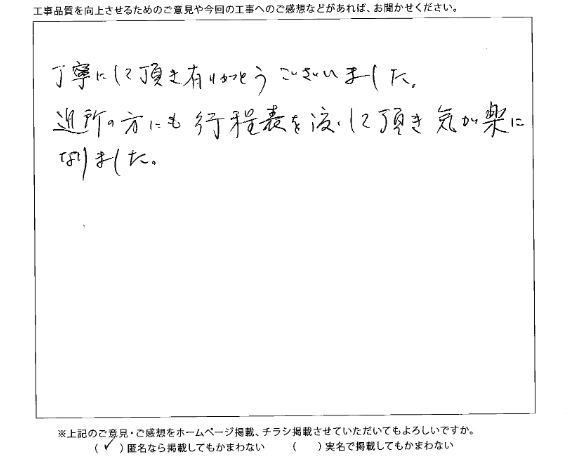 近所の方にも行程表を渡して頂き気が楽になりました。