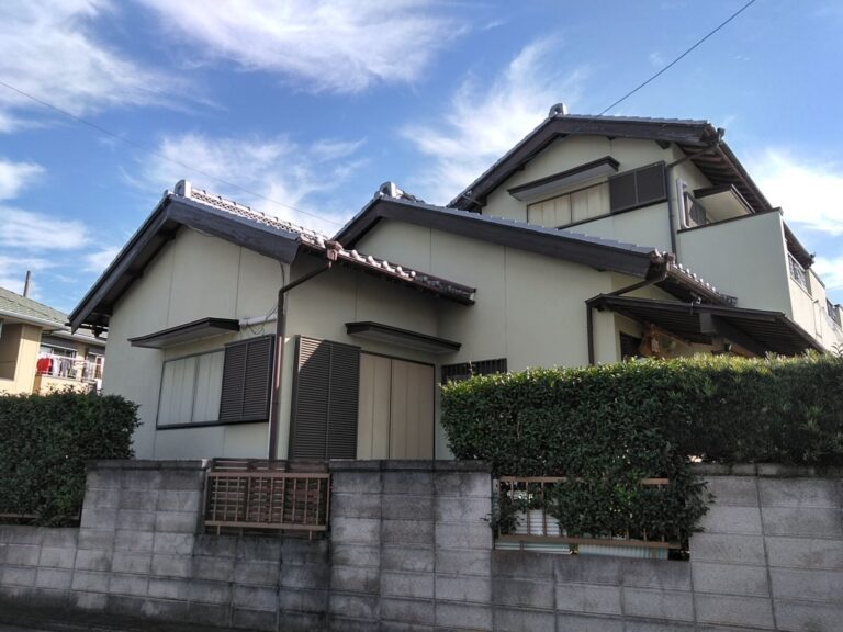 和風のお家ならではのモルタルとトタン外壁のお家でしたので、今までの施工事例から、それに合うお色合わせをご提案させていただきました。また、気になっていらっしゃった雨樋の修理なども一緒に行い、とても安心していただくことができました♪