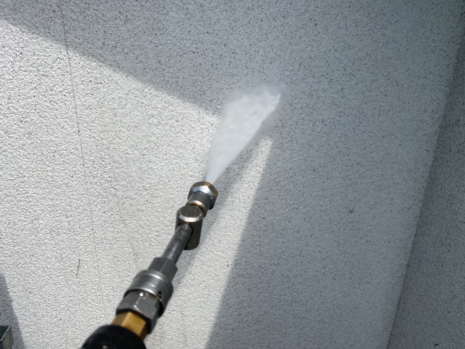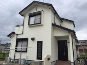 建てられてから10年程が経過し、よく日が当たる面の吹付外壁の色褪せ、劣化が見られる状態でした。