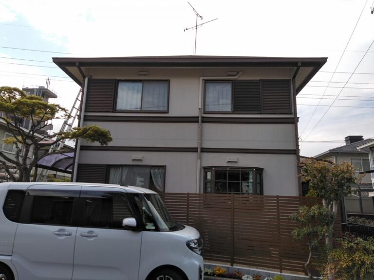 塗装前は2階の色が明るく、1階の色の方が濃い色の組み合わせでしたが、今回の塗装ではご家族の方のコーディネートであえて逆転させ、とてもおしゃれな感じに仕上がりました!