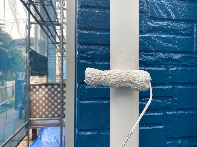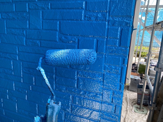 塗装前のレンガ調の外壁色も素敵ですが、今回がらっと色を変えてみたいとのことで、素敵な青色に塗り替わりました!