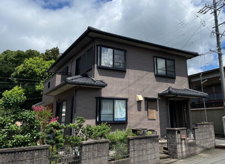 塗装前は日がよく当たる面の外壁のひび割れ・色あせが気になる状態でしたが、シーリング工事と外壁塗装をさせていただき、ご安心いただけました。色目も、濃いめのブラウンで重厚感があるカッコ良い仕上がりになりました!